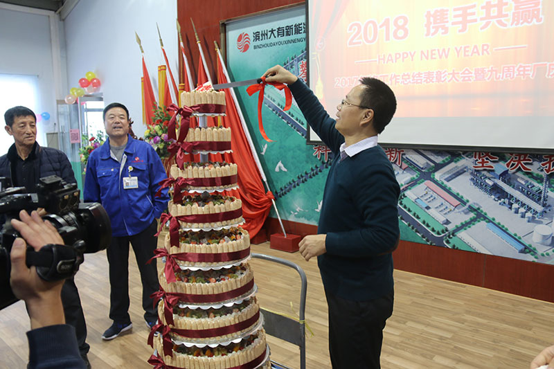 與生產(chǎn)一線職工分享廠慶蛋糕